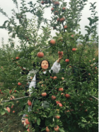 午餐结束后的活动更精彩,我们一起来体验“丰收的喜悦”——苹果采摘。一个个鲜亮红光的富士苹果挂在枝头,十分诱人。有的人可是第一次见到苹果树,显得格外兴奋。果园老农还向我们介绍了种植苹果的常识及趣事。大家亲手将一个个又大又红的苹果从树上摘下,现场一片欢声笑语,最后全员“满载而归”。