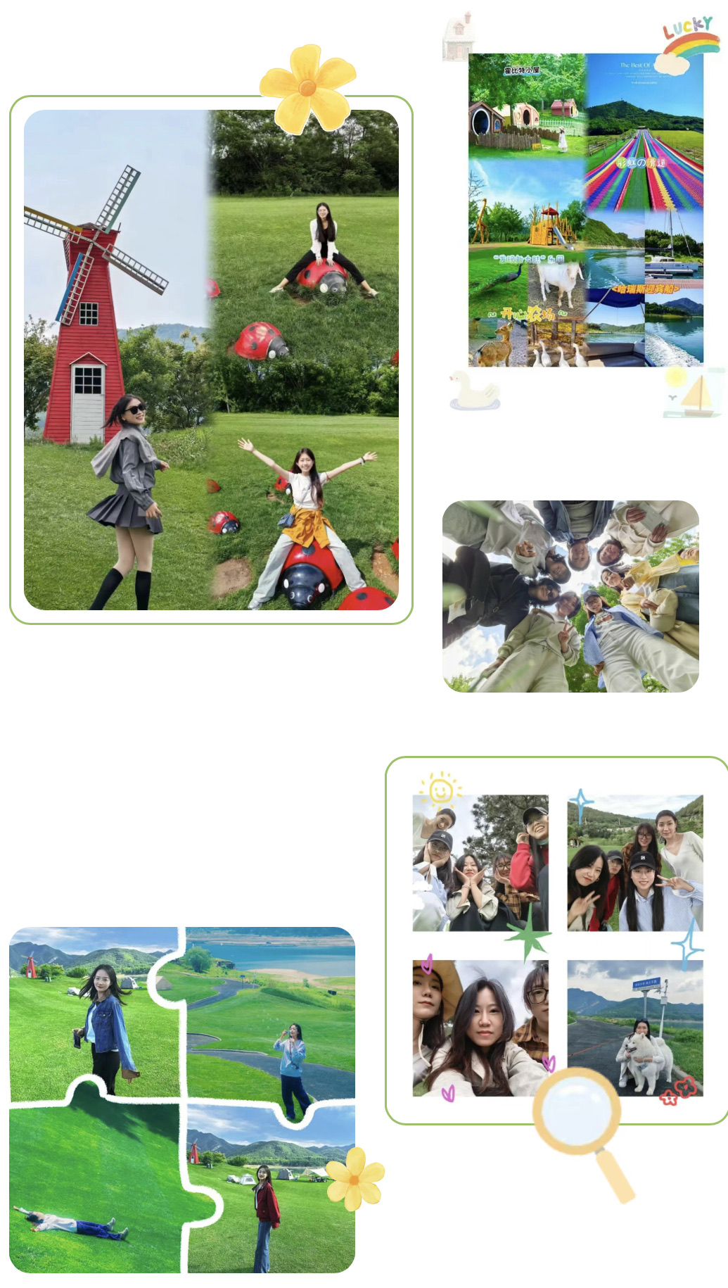 在园区自由活动时间,动物农场里与可爱萌宠亲密互动,游乐场中尽情释放童心,彩虹滑梯上体验风驰电掣的快感……每一处都留下了我们欢乐的身影!